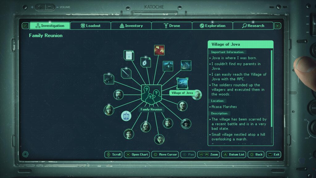 Nu, het is niet altijd koek en ei. Hell is Us ontbreekt door zijn filosofie soms wat aan toegankelijkheid. Voor de hoofdmissie helpt het menu om alles bij te houden, maar voor al de rest ga je screenshots en notities moeten nemen. Een in-game tool was hier handig geweest. Je ziet echt zoveel personages en zoveel verschillende locaties, dat het in de 25u durende campagne onmogelijk is om alles te onthouden. Completionists, zet je maar schrap. Tegelijk zijn er een paar puzzels waar de logica niet altijd 100% sluitend is. Sommige puzzels voelen dan weer aan als fetch quests die – in contrast met de infomissie vooral – weinig in de kuip hebben voor zowel het verhaal als de duimen. Het is gelukkig de minderheid van de puzzels.